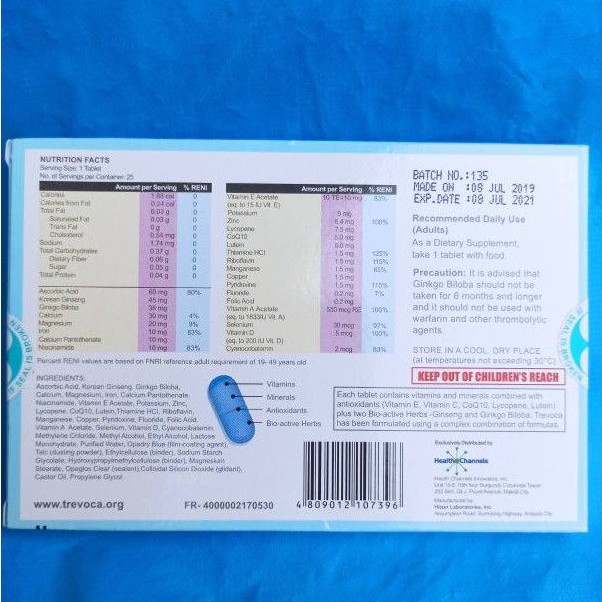 Authentic Trevoca Dietary Supplement 25 Tablets 1 Box Lazada Ph